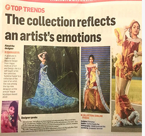 4. Ishwariya R, Student of I Semester is an avid designer of clothes and has been featured in various newspapers for her innovative and creative designs for various collections. She has also won many accolades for the same at various events. She has also been instrumental in training her fellow classmates for various fashion show events in Inter-Collegiate Fests across different colleges in Bengaluru.