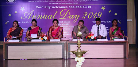Seshadripuram Institute of Management Studies hosted an Annual Day in the department on 19th December 2019. The day started with an Invocation Dance by Ms. Chandini of III Semester MBA. Following the Invocation Dance, the dignitaries for the day lighted the lamp and spread an aura of positivity among the audience. Dr. Vatsala G, Director, SIMS introduced the dignitaries to the audience. The Chief Guest for the Day was Ms. Jyothi, Film and Cine Artist. The event was presided over by Shri. N R Panditharadhya, President, Seshadripuram Educational Trust. The other dignitaries on the dais included Dr. Vijayakumar A B, Director, Post Graduate Department of Commerce and Management, Prof. Amruta N, Assistant Professor and Convener of the Event as well as Prof. Divya H N, Assistant Professor and Co-Convener of the Event. Dr. Godhamani, Governing Council Member of SIMS, also graced the occasion with her presence.