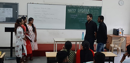 A group discussion activity was held for the I Semester Students of Section A and Section B on 10th and 11th October as part of their Management Forum activity. Students were divided into groups of 5 each and were given topics to speak either for or against. The topics were concerned to current affairs, technology and a lot other issues concerning the country. The students presented a lot of valid points for and against the argument and demonstrated good stage skills and presentation skills. It was a great experience for the students to learn the various aspects of a group discussion.