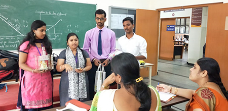 On 5th October 2019, Ethnic Day and Saraswati Pooja was celebrated in the department. Ethnic wear was the code for the day. The students of both III and I Semester decorated their respective classrooms and a Rangoli competition was held for all the sections. Prof. Godhamani who was a special invitee for the day decided the winners for the same. Along with this, a Pooja happened for the entire department where all the rooms including the library, PG Lab and the Incubation Centre was decorated. The students also were a part of the competition wherein Mr. and Miss. Ethnic for the day were chosen.